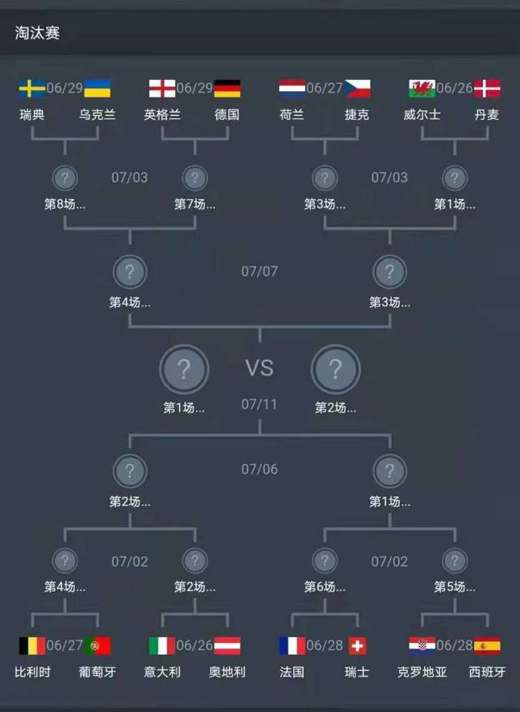 赛后出了淘汰赛分组,意大利和葡萄牙,法国和西班牙,德国和英格兰分到一个分区。另外的一个分区真的是上上签,荷兰竟然是最强的队伍。德国和英格兰下场比赛就要硬碰硬了。不得不说,这次欧洲杯欧洲杯荷兰的分组是真的舒服,法德葡的分组真的难受。