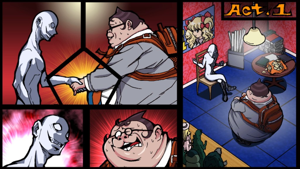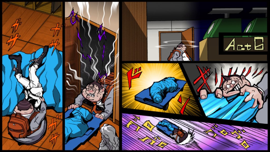 橘色柜子上面的盒子点一下会有大概率得到食物。可以重复领取,并没有发现有上限。偶尔会出现醉酒或中毒状态。出现中毒状态的时候会出现文字:“难吃的食物”。不知道当年公司的伙食是有多可怕,连彩蛋里都不忘提一下。
